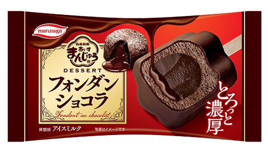 フランスの代表的なチョコレートケーキ「フォンダンショコラ」をあいすまんじゅうDessertで表現。ビターなチョコアイスでとろけるチョコソースと柔らかいチョコあんを包みこみ、口溶けのよいチョコレートコーチングをまとった、チョコづくしの濃厚な味わいをお楽しみください。